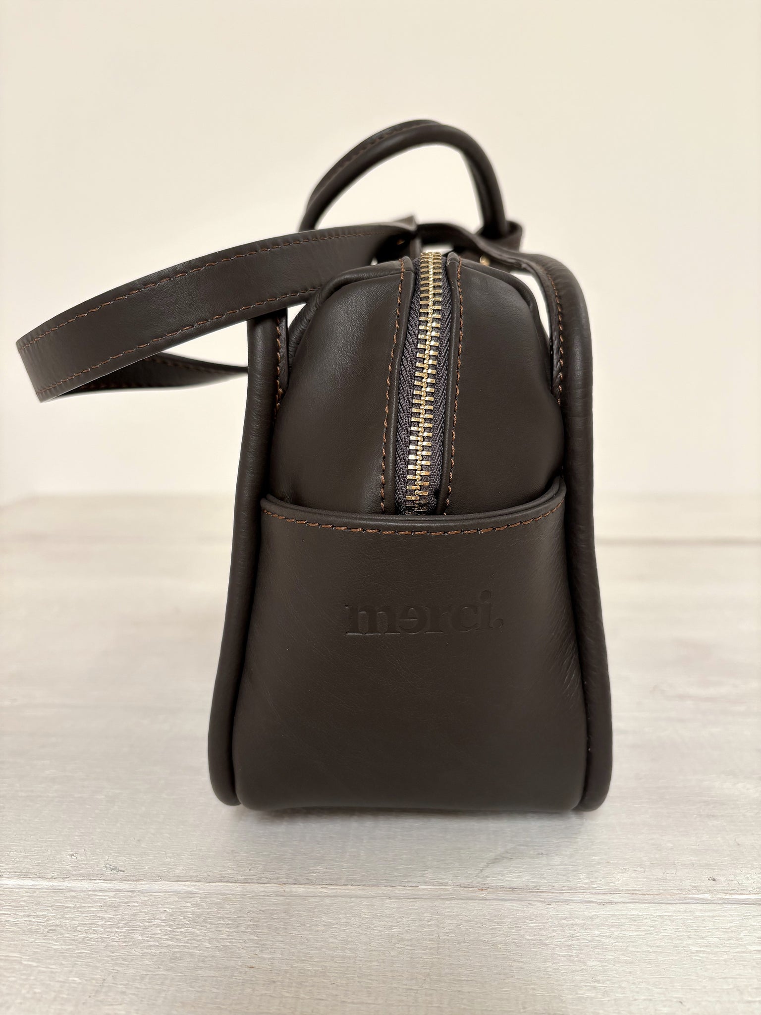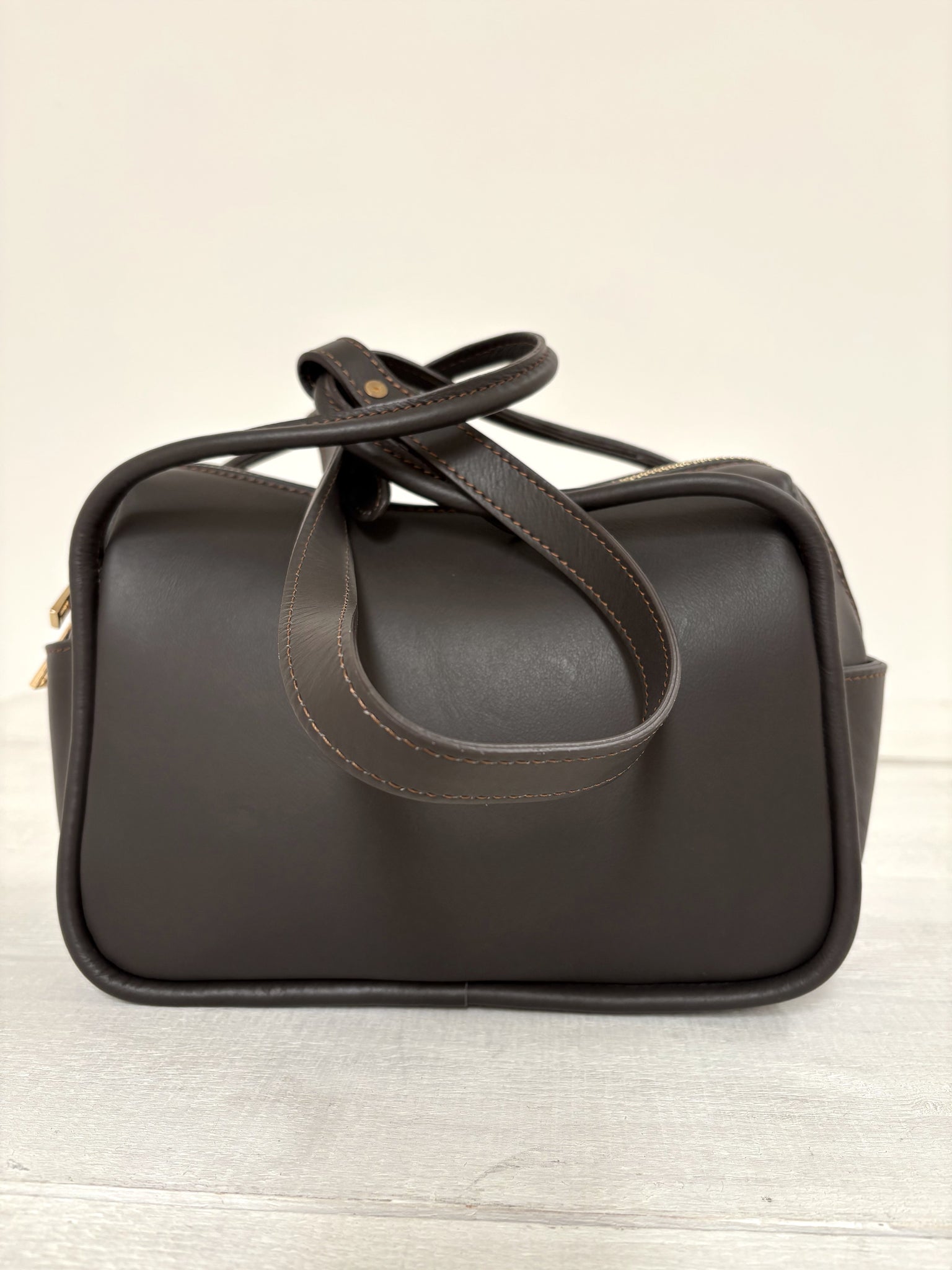 Borsa in vera pelle,. vitello morbido, manici a mano e tracolla chiusura con zip