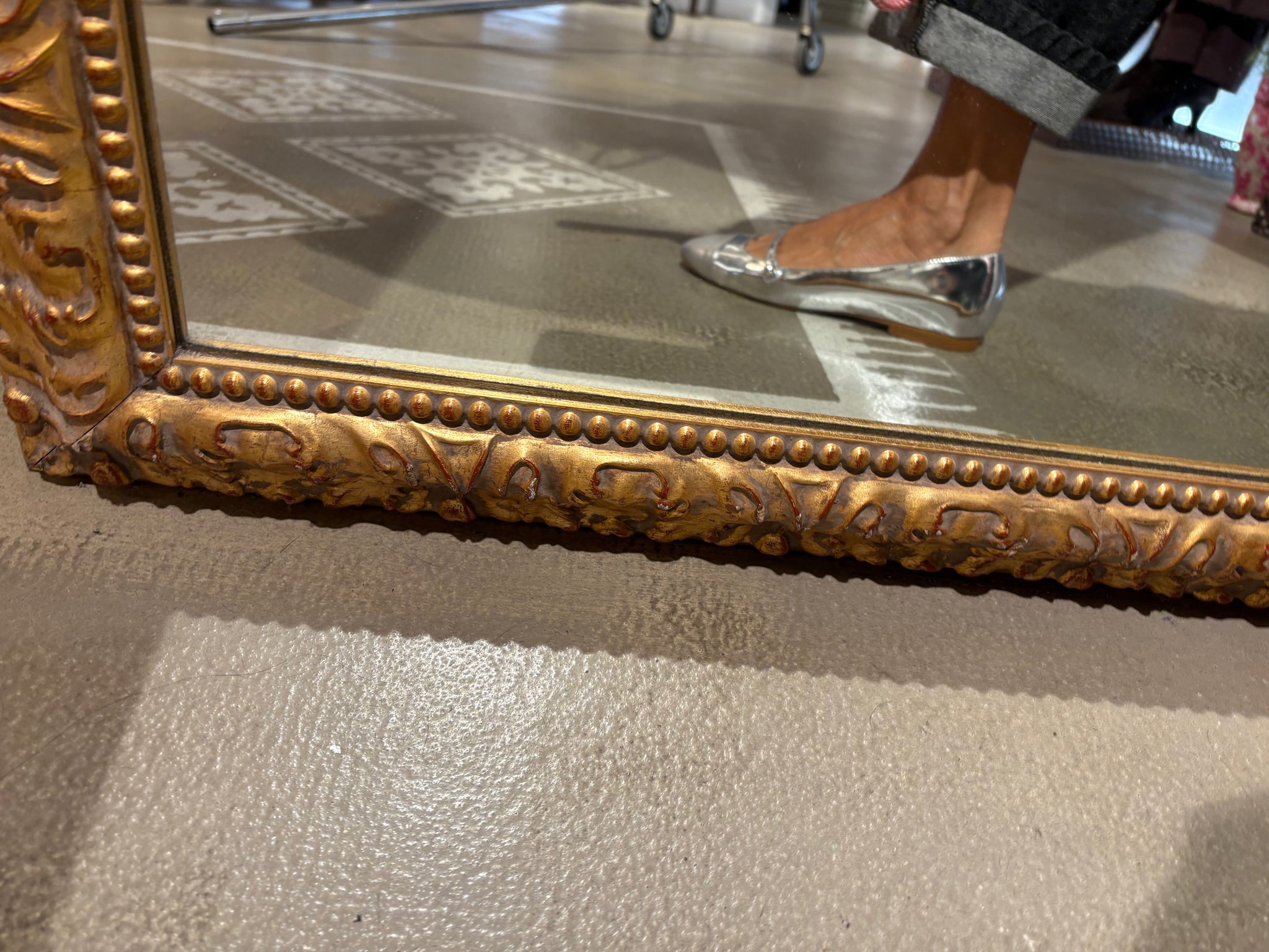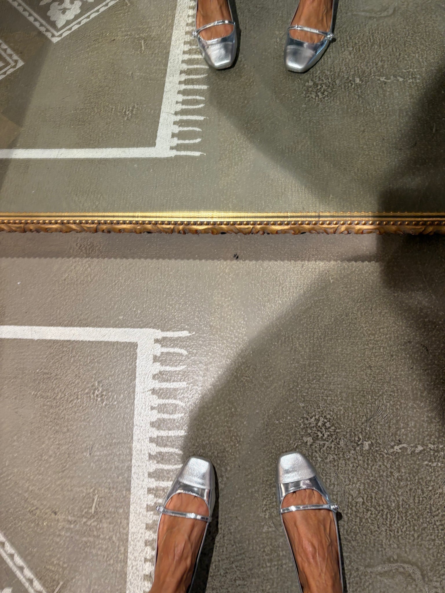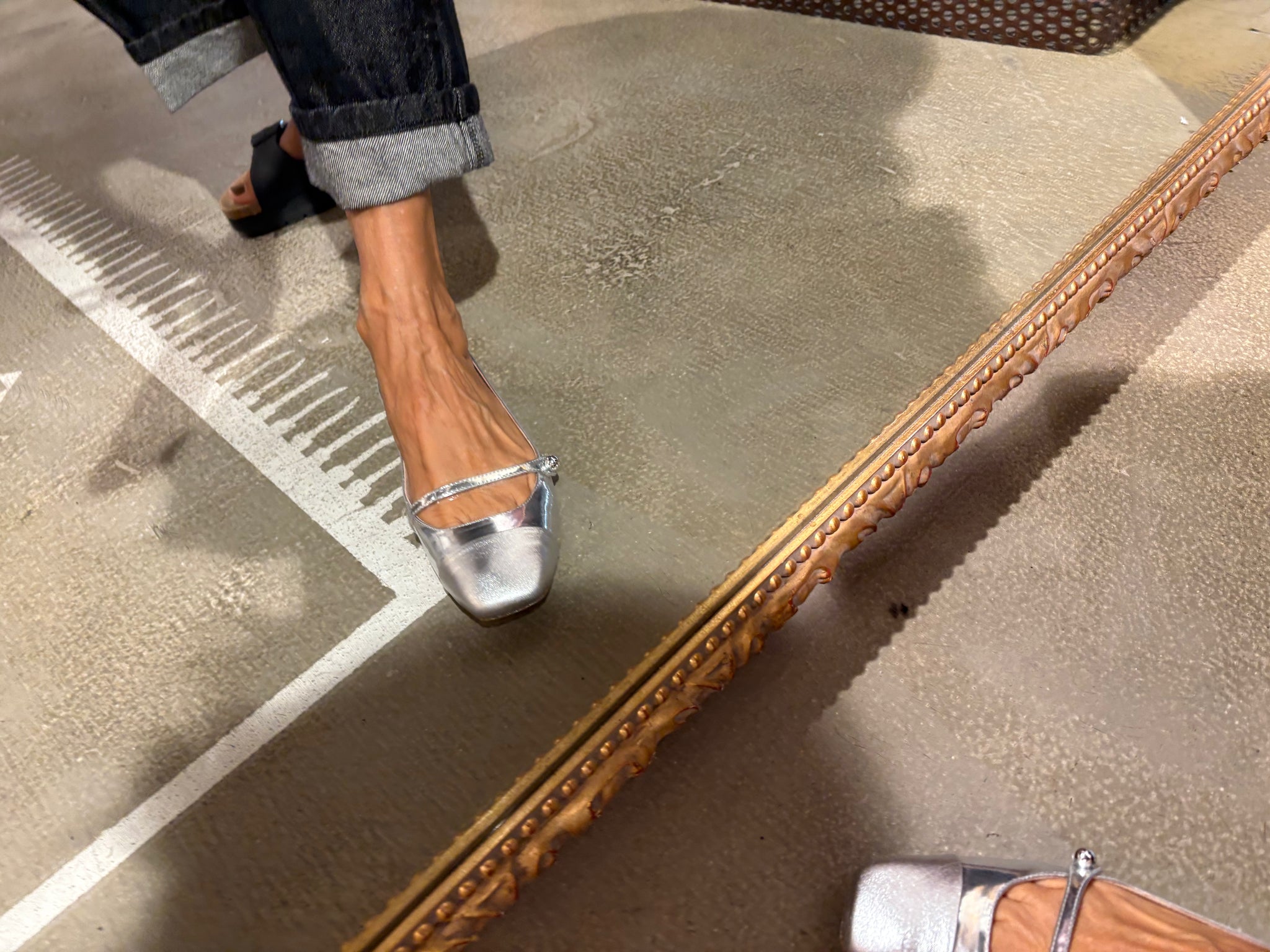 Ballerina in pelle punta tonda , bimateriale argento, parte a specchio parte opaco.