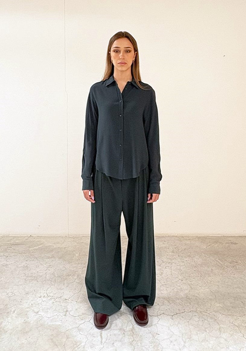 Camicia manica lunga, vestibilità regolare, collo uomo, in seta viscosa, allure elegante .