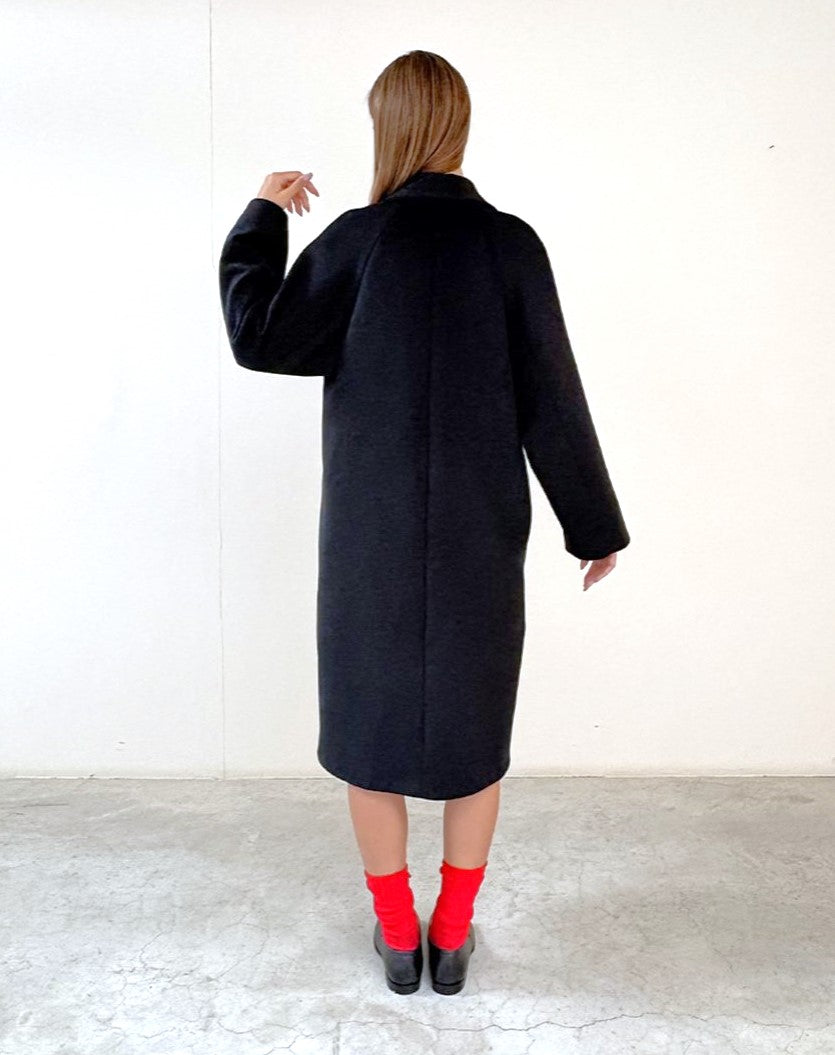 Cappotto in panno battuto, doppio petto, foderato, lunghezza media, semi over.