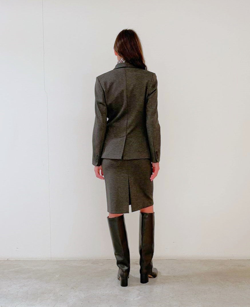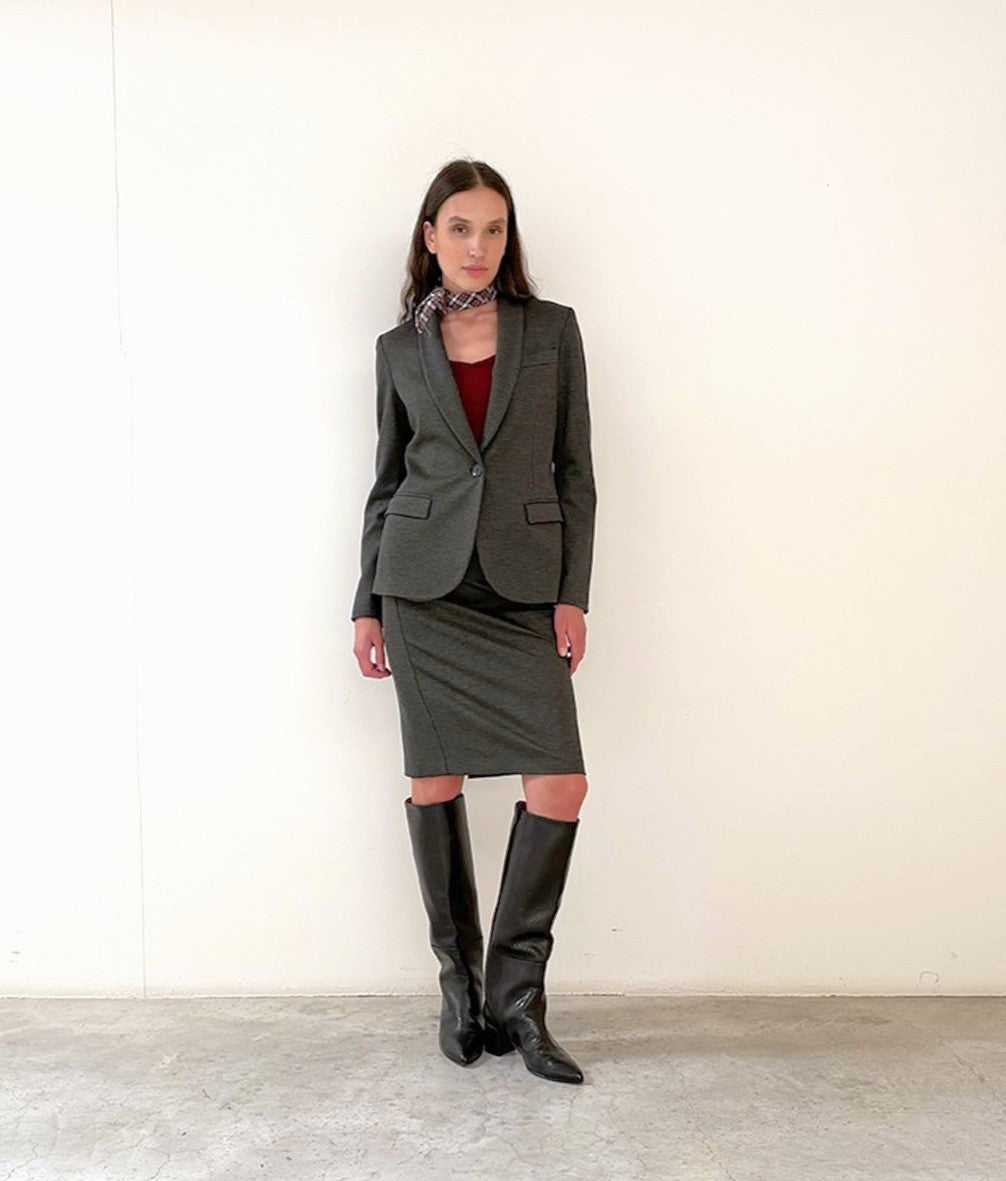 Giacca sfiancata, un bottone, revere sciallato, lunghezza media, in jersey Punto Milano, morbido confortevole elasticizzato
